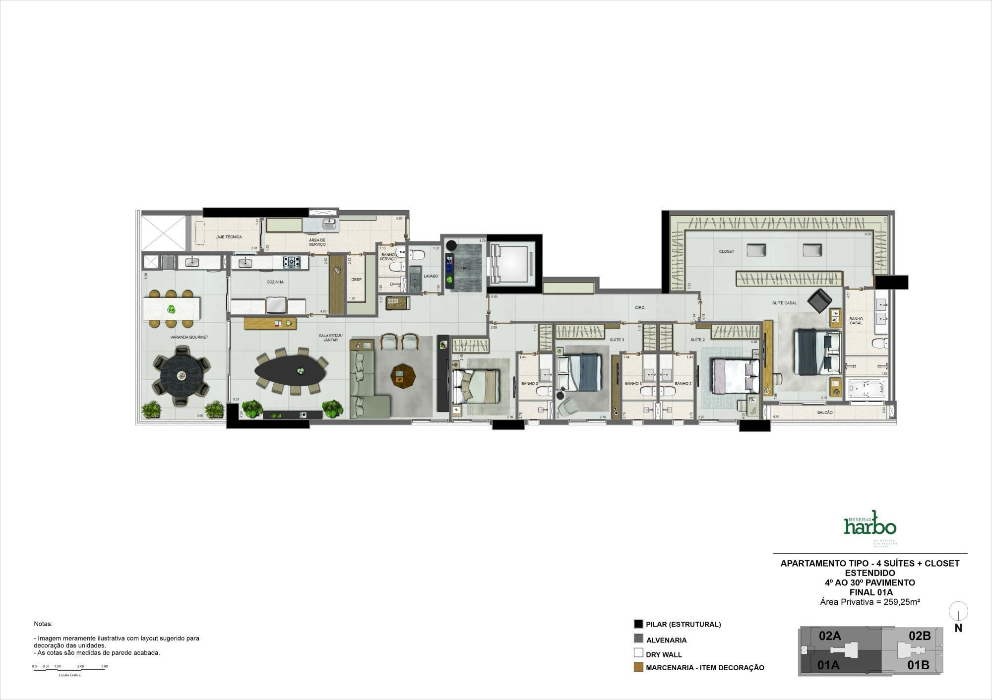 Apartamento à venda no Reserva Harbo, um lançamento da Brasil Incorporações no melhor do Setor Marista. Com 259 m² privativos, oferece quatro suítes amplas, três vagas de garagem e escaninho privativo. A varanda gourmet com churrasqueira a carvão integra-se de maneira fluida à sala de...